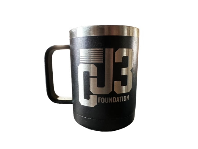 The CJ3 “30oz and 20oz Tumblers” feature a double-walled insulation and easy open clear lid. This stainless steel drinkware will keep your drinks cold for up to 24 hours or hot for up to 8 hours! Their rough and tough exteriors are matte black, have our CJ3 Foundation logo laser-etched into them, and the bottoms are tapered to fit in most cup holders!