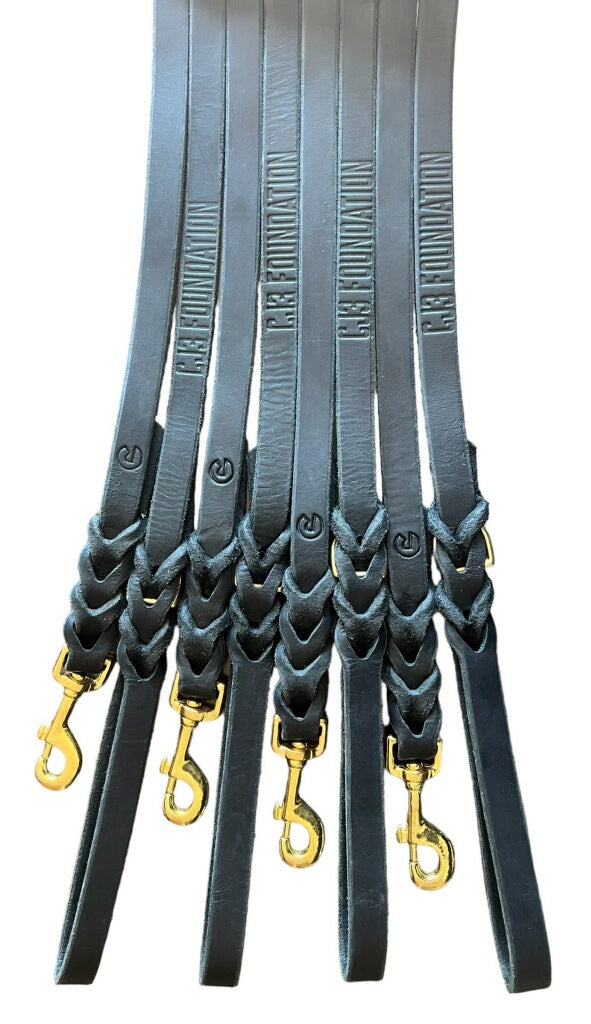 Leather Dog Leash Embossed with CJ3 Foundation Brand