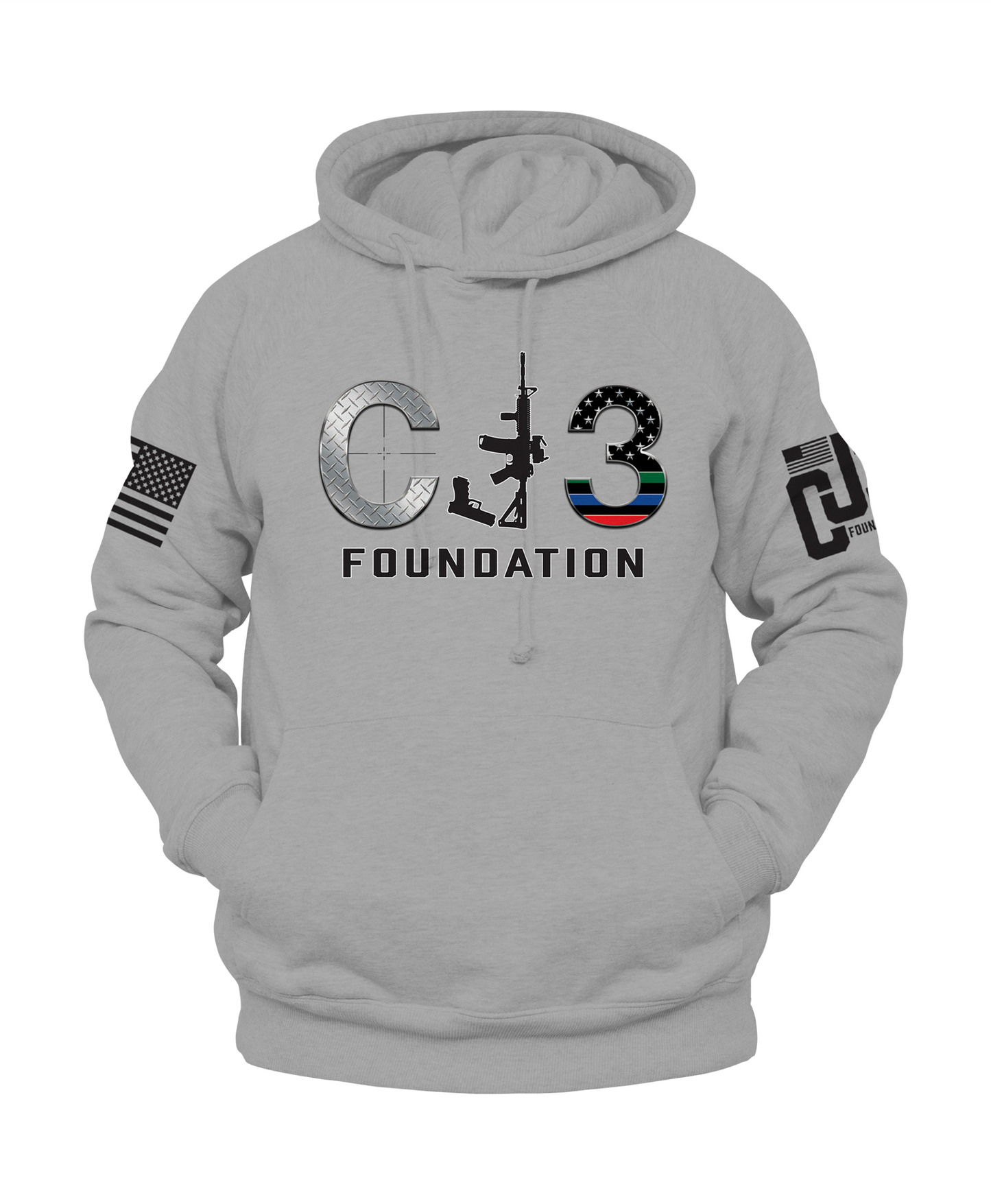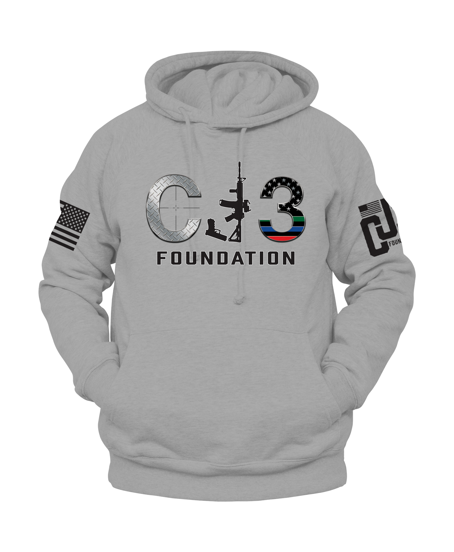 This is the CJ3 “Weapons” shirt! On the front of the shirt is the word CJ3 Foundation - “C” (Combined) - The CJ3 Foundation enlists and incorporates a network of support and services from multiple partner agencies and organizations (federal, state, and local governments; private and commercial sectors; charity and advocacy groups) to provide combined and unified assistance to those in need. The "C" is diamond plated and has a rifle reticle in the center of it. “J” (Joint) - In the military, ‘J’ represents activities, operations, and organizations in which multiple elements participate. Hence, it represents the diverse group the CJ3 Foundation supports…our wounded U.S. Military Service Members/Veterans, Law Enforcement, Firefighters, and Emergency/First Responders. The "J" is represented by a standing rifle with a handgun forming the bottom curve of the letter. “3” (Operations) - In the military, the ‘3 Shop’ denotes support, planning, coordination, and operations. The CJ3 Foundation embraces this ‘3 Shop’ concept as it is representative of our role when providing services, support, and advocacy to those in need. The "3" is colored with our CJ3 American flag design; a field of stars, one green stripe to represent US Military, one blue stripe to represent Law Enforcement, and one red stripe to represent Firefighters and First Responders. “Foundation” - A 501(c)(3) nonprofit public charity organization engaging in charitable activities. Below the letters CJ3 is the word "FOUNDATION" in our typical font.